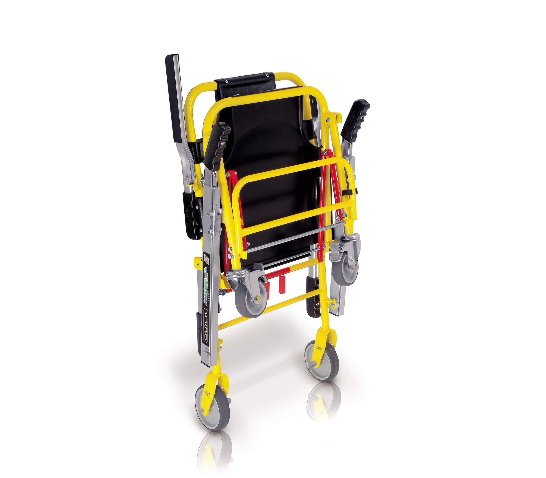 楼梯担架满足在狭窄空间运送病人的需要。特别适用于:楼梯、山坡、隧道等情况下的病员转运。